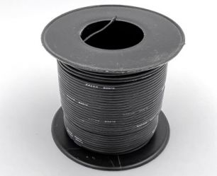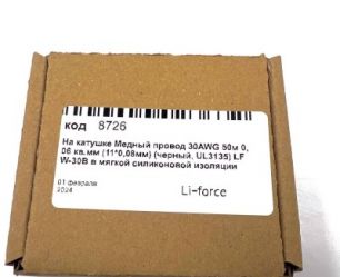 На катушке Медный провод 30AWG 50м 0,06 кв.мм (11*0,08мм) (черный, UL3135) LFW-30B в мягкой силиконовой изоляции
