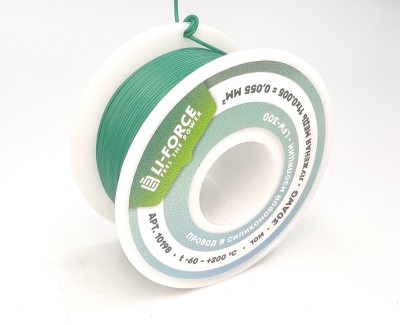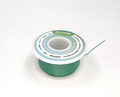 На катушке Медный провод 30AWG 10м 0,06 кв.мм (11*0,08мм) (зеленый, UL3135) LFW-30G в мягкой силиконовой изоляции