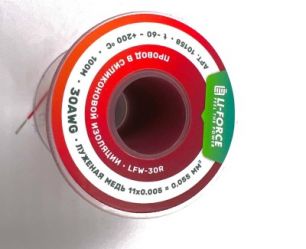 На катушке Медный провод 30AWG 100м 0,06 кв.мм (11*0,08мм) (красный, UL3135) LFW-30R в мягкой силиконовой изоляции