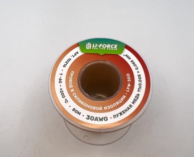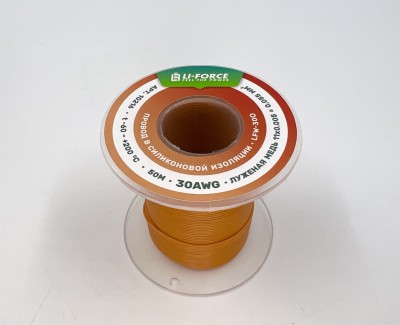 На катушке Медный провод 30AWG 50м 0,06 кв.мм (11*0,08мм) (оранжевый, UL3135) LFW-30O в мягкой силиконовой изоляции
