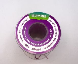 На катушке Медный провод 30AWG 50м 0,06 кв.мм (11*0,08мм) (фиолетовый, UL3135) LFW-30V в мягкой силиконовой изоляции