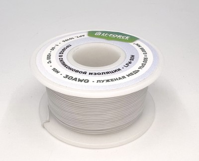 На катушке Медный провод 30AWG 50м 0,06 кв.мм (11*0,08мм) (белый, UL3135) LFW-30W в мягкой силиконовой изоляции