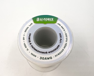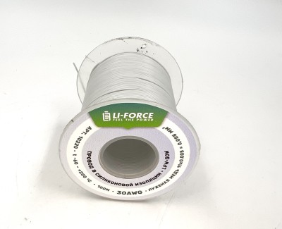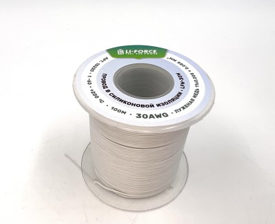 На катушке Медный провод 30AWG 50м 0,06 кв.мм (11*0,08мм) (белый, UL3135) LFW-30W в мягкой силиконовой изоляции