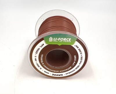 Описание На катушке Медный провод 30AWG 100м 0,06 кв.мм (11*0,08мм) (коричневый, UL3135) LFW-30Br в мягкой силиконовой