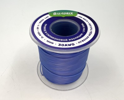 На катушке Медный провод 30AWG 100м 0,06 кв.мм (11*0,08мм) (синий, UL3135) LFW-30Bl в мягкой силиконовой изоляции