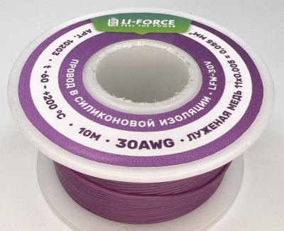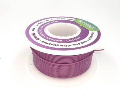 На катушке Медный провод 30AWG 10м 0,06 кв.мм (11*0,08мм) (фиолетовый, UL3135) LFW-30V в мягкой силиконовой изоляции
