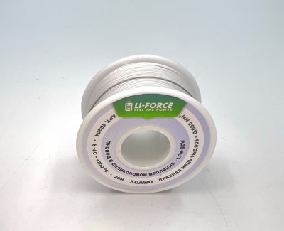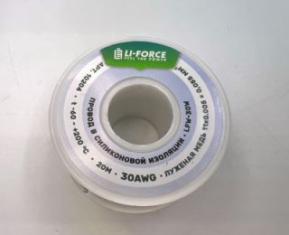 На катушке Медный провод 30AWG 20м 0,06 кв.мм (11*0,08мм) (белый, UL3135) LFW-30W в мягкой силиконовой изоляции
