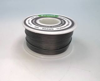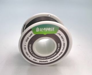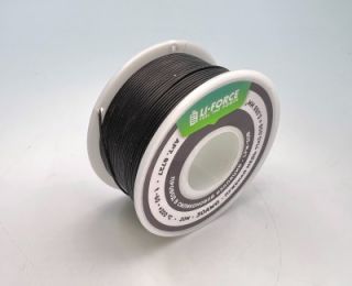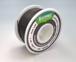На катушке Медный провод 30AWG 20м 0,06 кв.мм (11*0,08мм) (черный, UL3135) LFW-30B в мягкой силиконовой изоляции