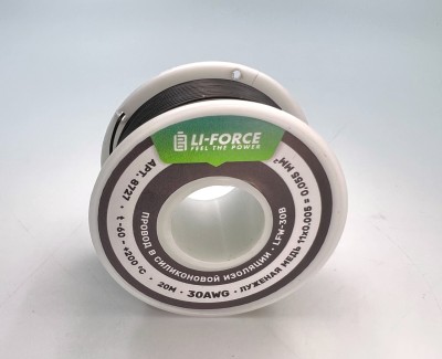 На катушке Медный провод 30AWG 50м 0,06 кв.мм (11*0,08мм) (серый, UL3135) LFW-30Gr в мягкой силиконовой изоляции