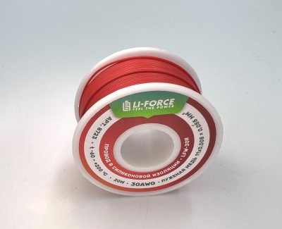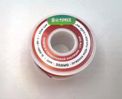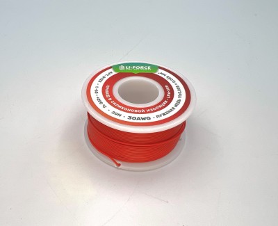 Описание На катушке Медный провод 30AWG 20м 0,06 кв.мм (11*0,08мм) (красный, UL3135) LFW-30R в мягкой силиконовой изоляции