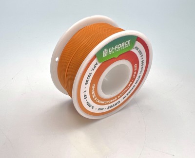 На катушке Медный провод 30AWG 20м 0,06 кв.мм (11*0,08мм) (оранжевый, UL3135) LFW-30O в мягкой силиконовой изоляции
