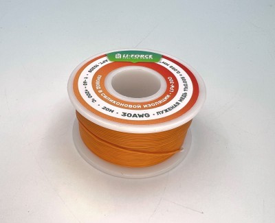 Описание На катушке Медный провод 30AWG 20м 0,06 кв.мм (11*0,08мм) (оранжевый, UL3135) LFW-30O в мягкой силиконовой изоляции
