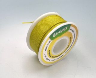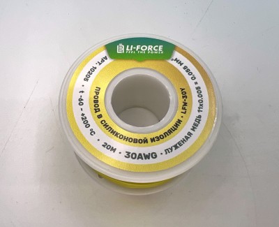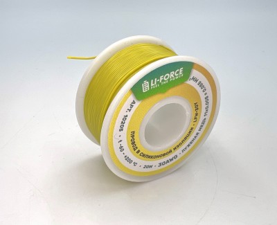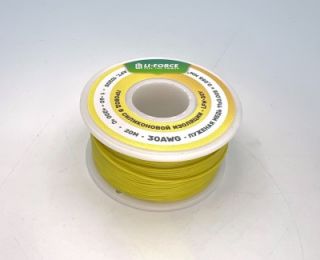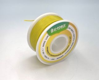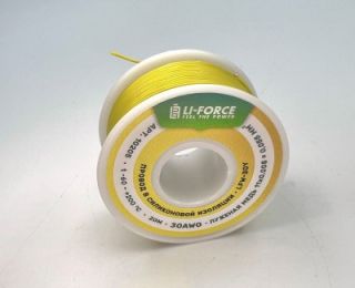 На катушке Медный провод 30AWG 20м 0,06 кв.мм (11*0,08мм) (желтый, UL3135) LFW-30Y в мягкой силиконовой изоляции