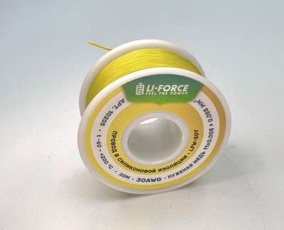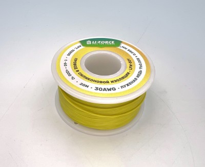 30AWG 0,06 мм? Медный провод в силиконовой изоляции (желтый, UL3135) LFW-30Y