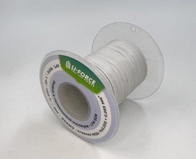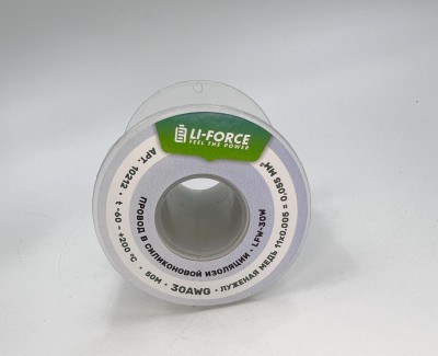 На катушке Медный провод 30AWG 50м 0,06 кв.мм (11*0,08мм) (белый, UL3135) LFW-30W в мягкой силиконовой изоляции