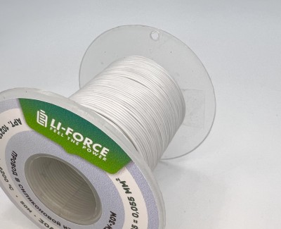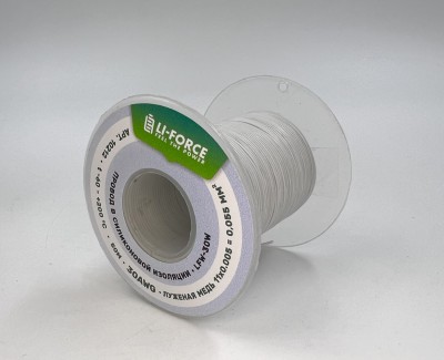 • На катушке Медный провод 30AWG 20м 0,06 кв.мм (11*0,08мм) (белый, UL3135) LFW-30W в мягкой силиконовой изоляции