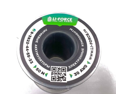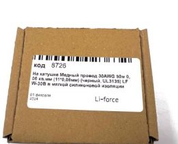 На катушке Медный провод 30AWG 20м 0,06 кв.мм (11*0,08мм) (черный, UL3135) LFW-30B в мягкой силиконовой изоляции