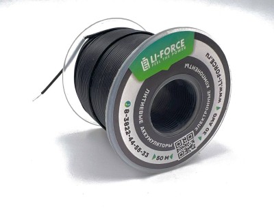 На катушке Медный провод 30AWG 10м 0,06 кв.мм (11*0,08мм) (черный, UL3135) LFW-30B в мягкой силиконовой изоляции