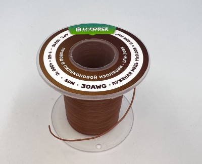 Мягкий многожильный медный лужёный провод в силиконовой высокотемпературной изоляции.