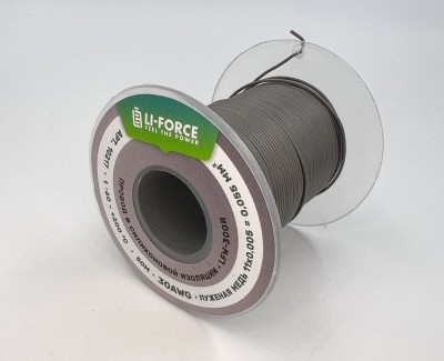 На катушке Медный провод 30AWG 50м 0,06 кв.мм (11*0,08мм) (красный, UL3135) LFW-30R в мягкой силиконовой изоляции